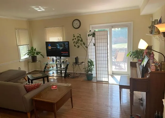 Esta casa de vacaciones se encuentra a 30 km del aeropuerto Nacional Ronald Reagan de Washington y a una distancia de 7 km de puntos de interés cultural como el Museo Mill House. Además, la villa está a poco más de 15 minutos en coche de la Casa Woodlawn & Pope-Leighey y a poco más de 10 minutos en coche del arroyo Pohick. La Villa Townhouse With High Speed Wifi & Free Parking ofrece fácil acceso a maravillas naturales como el parque del valle del arroyo South Run (3 km) y el Parque Acuático Pirate's Cove (8 km).
